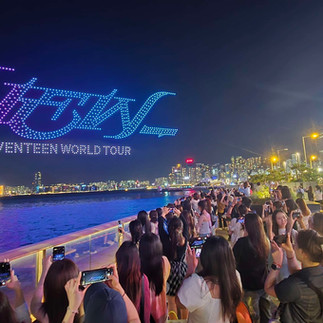 [HONG KONG, September 26, 2023] On this night, the sky over Victoria Harbour, Hong Kong, was adorned not only with twinkling stars but also with a dazzling chapter belonging to SEVENTEEN and CARAT (SEVENTEEN's official fandom name)! The first of four drone shows (scheduled for September 26, 27, and 29) has successfully commenced. Meticulously planned by the Drone organizer, X Social Group, the event successfully built anticipation for the upcoming concert at the Kai Tak Sports Park.